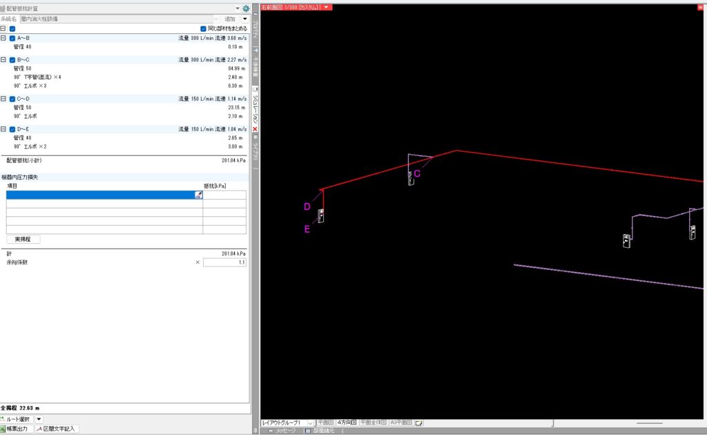 Rebro~便利機能1 取引先様用 2024.12.15 摩擦損失計算 設定でヘーゼンを選択 流量を入力 ※手順 末端から流量を入力 シュミレーションにてルート選択して実行 ※注意 ルート区画選択は、系統の末端から末端を選択実行 帳簿出力でエクセルファイル編集も可能